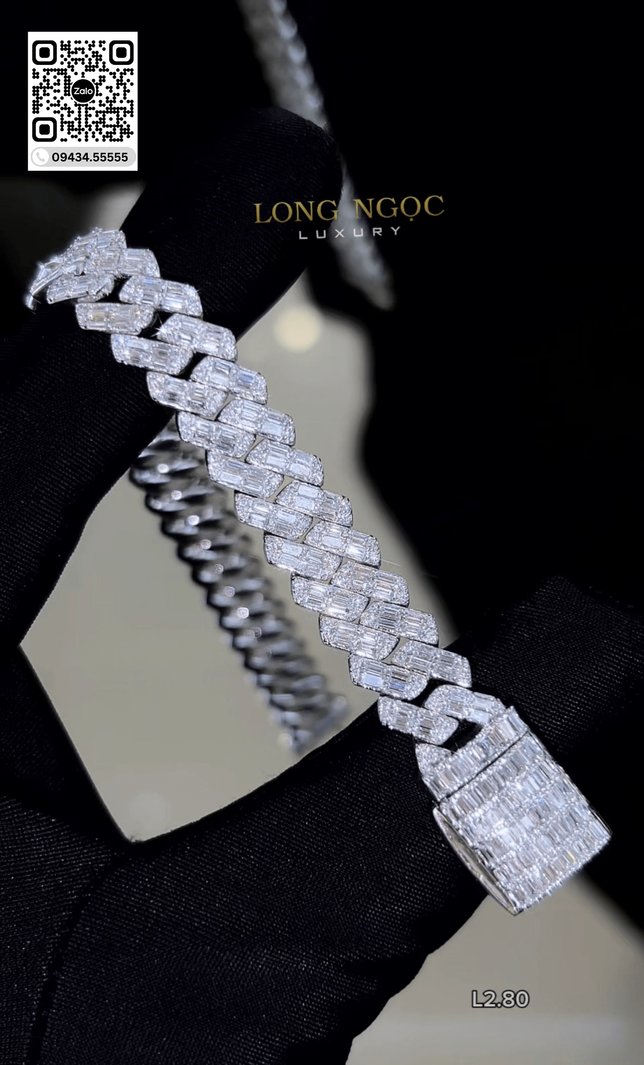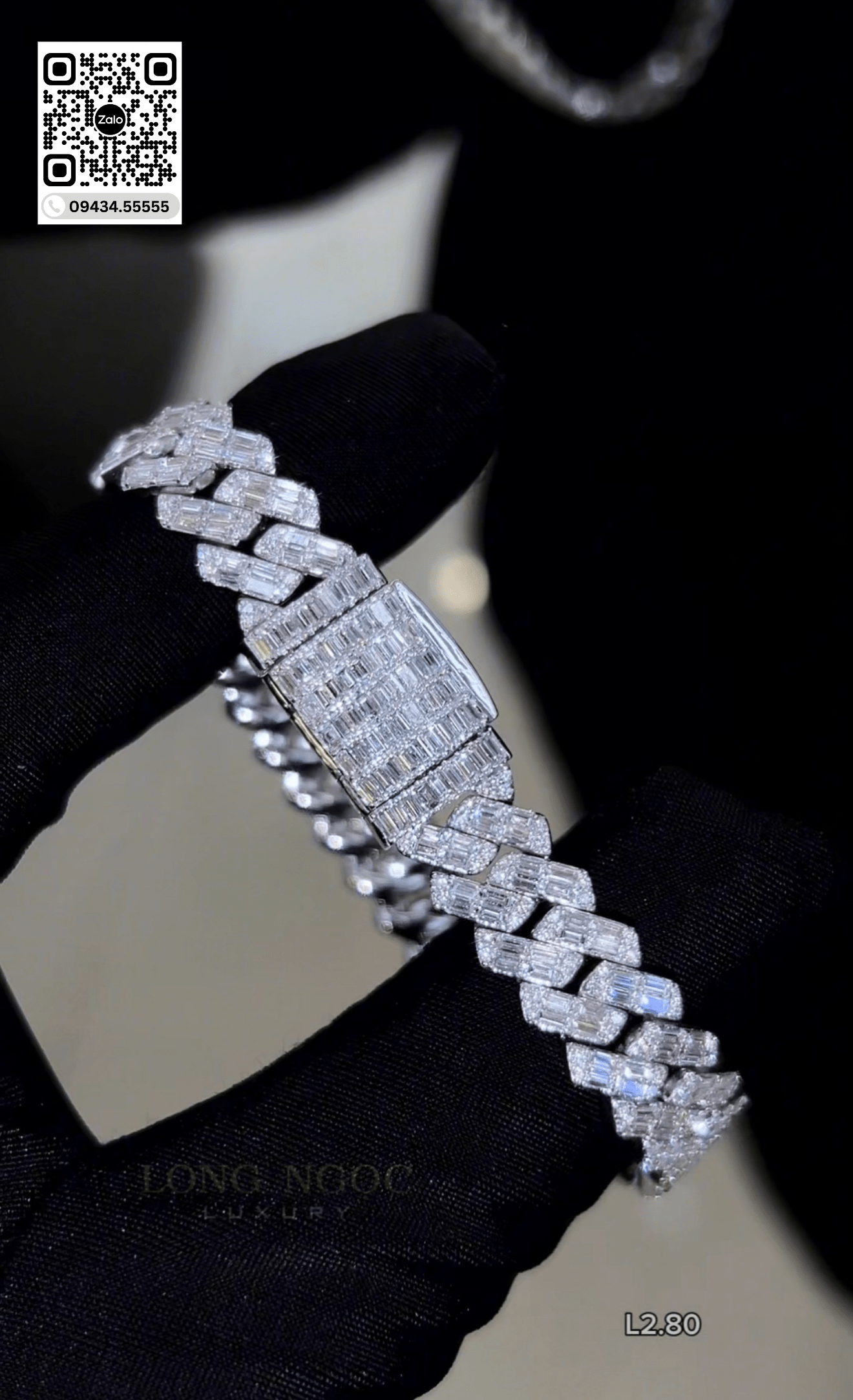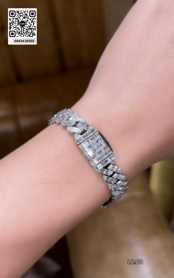 Lắc Tay Cuban Full Xoàn Baguette – Long Ngọc Luxury – L2.80