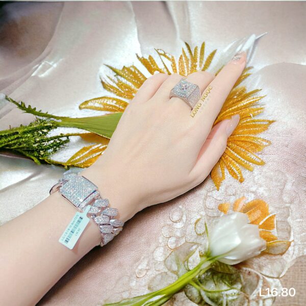 Lắc Tay Kim Cương – Cuban – L16.80 – Long Ngọc Luxury , mẫu lắc tay cuban gắn full kim cương tấm loại trắng sạch sáng chiếu nhất chuẩn VVS lên tay cực sang chảnh , đẳng cấp , giá thay đổi tuỳ ni tay