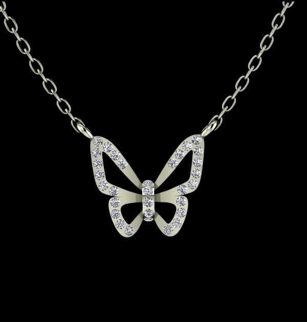 Mặt Dây Kim Cương – M218 , Thiết kế mặt bướm cực xinh , mẫu dễ đeo dễ phối đồ.
